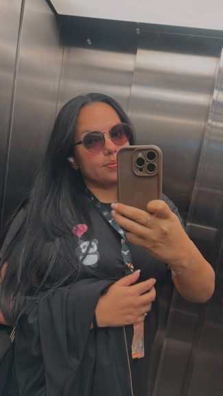 • Hair: Black, Long length