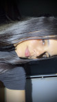 • Hair: Black, Medium length