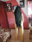 - Hair: Black, Long length
