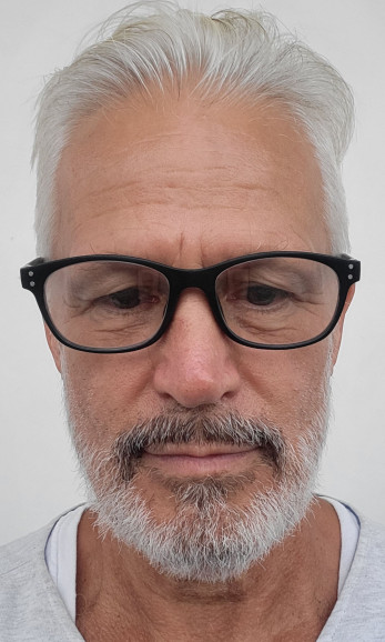 - Cabello: Gris, Corto