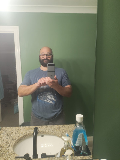 - Hair: Bald, Short length