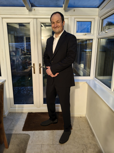 - Hair: Dark brown, Short length